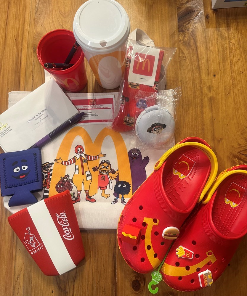 $50 off Gameplay at Top Golf and McDonald's Gift bag-5 Breakfast, Lunch, Or Dinner value meal tickets. 5 dessert tickets. Men’s red McDonald’s Crocs,(size11) McDonald character socks, character Koozie, pen, McDonald’s cup. Character canvas bag, $150 If purchased online, please text 985-273-2235 to schedule a pickup at Walker High School.