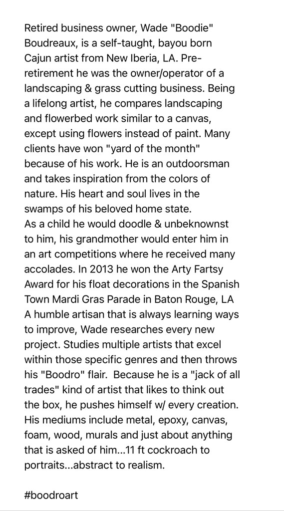 Donated by: Wade Boudreaux Art