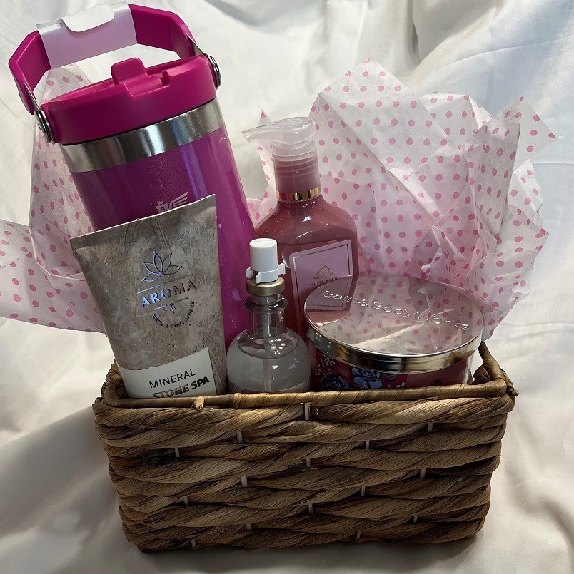 The winner of this basket will be able to rehydrate with their pink Stanley water bottle while being able to enjoy a candle from Bath & Body Works as well as a bottle of hand soap and while you are at you can use some Aroma Body Creme and Oil Mist to top off giving your body some extra glow. Item must be picked up at Walker High School. If you need to schedule a pickup, please send a message to 225-202-8018 or leave a message.