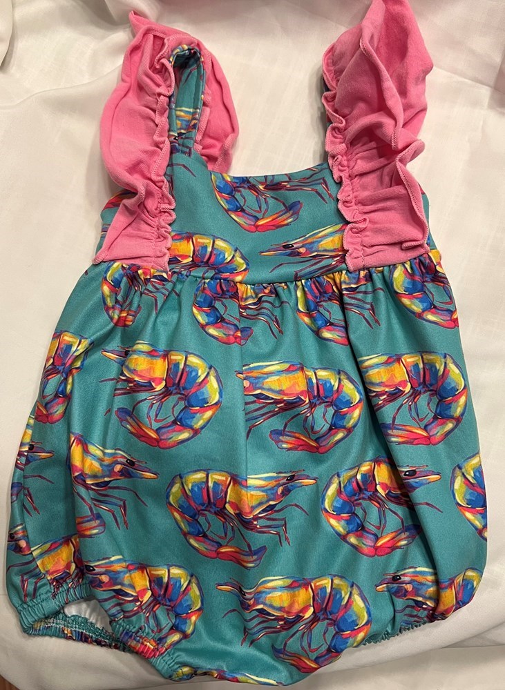 This newborn outfit has ruffle sleeves and ties in the back with snaps in the bottom for easy changing. this outfit is made by Jolie-Beau. Item must be picked up at Walker High School. If you need to schedule a pickup, please send a message to 225-202-8018 or leave a message.