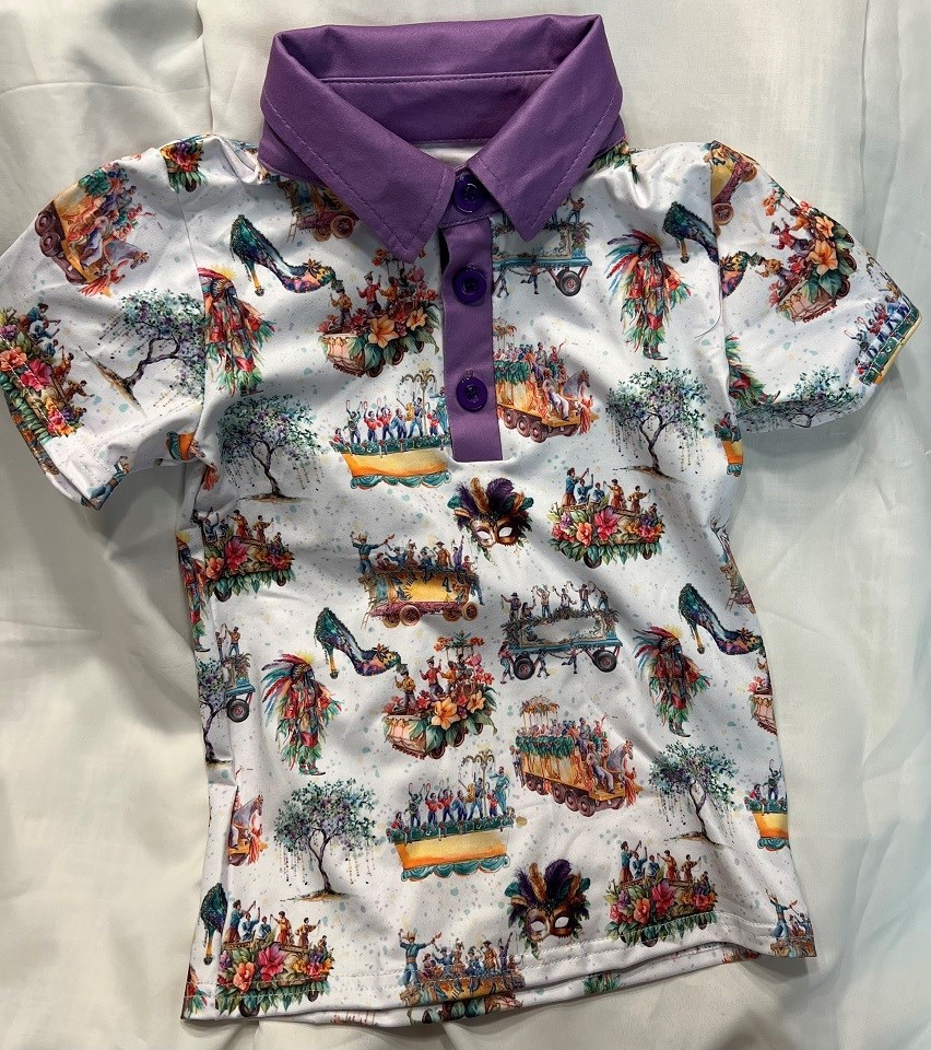 This Jolie Beau polo is a size 3T and is here just in time for Mardi Gras.