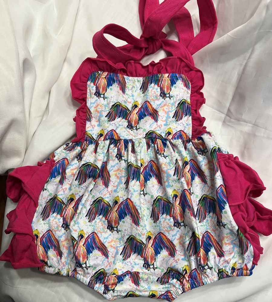 This is a cute colorful jumper with ruffles on the backside and it ties around the neck. This Jolie-Beau jumper is a size 2T. Item must be picked up at Walker High School. If you need to schedule a pickup, please send a message to 225-202-8018 or leave a message.