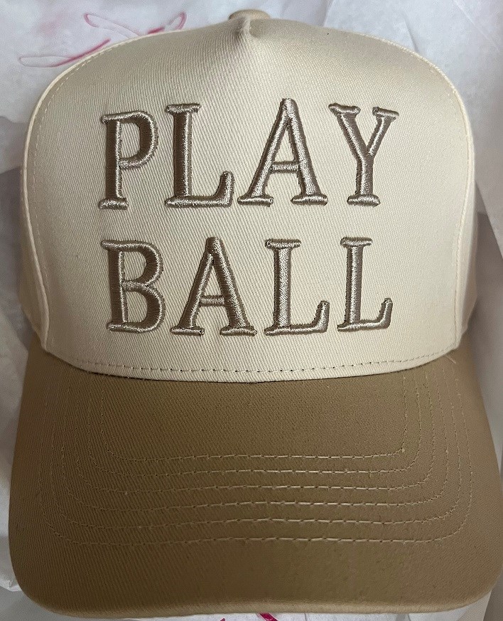 Grab this cute on the go Play Ball baseball cap for game day and win a GC for $25.00 for future purchases.