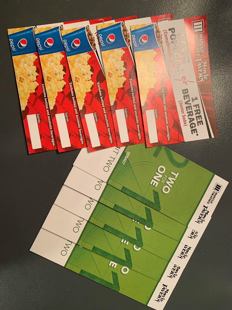 1 Dozen red roses from The Flower Basket, 5-Two for one Gift certificates to any Marcus Theaters (Movie Tavern included). 5 Coupons for free popcorn/free beverage. $50 Gift card from Bonta Del Forno in Denham Springs.